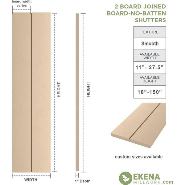 11 in. x 90 in. Timberthane Polyurethane 2-Board Joined Board-n-Batten Smooth Faux Wood Shutters, No Batten Pair