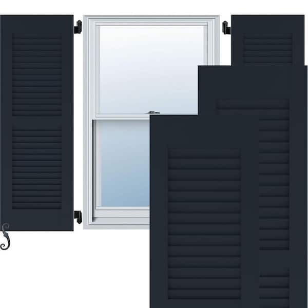 12 in. W x 37 in. H Americraft 2 Equal Louver Exterior Real Wood Shutters Per Pair in Starless Night Blue