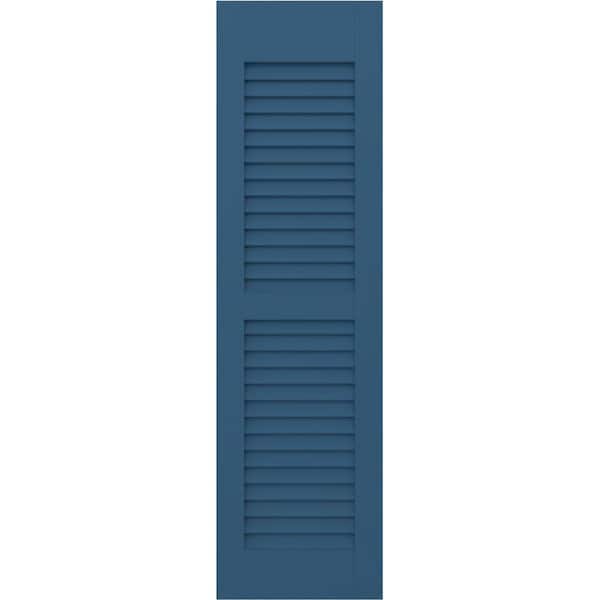 12 in. W x 64 in. H Americraft 2 Equal Louver Exterior Real Wood Shutters Per Pair in Sojourn Blue