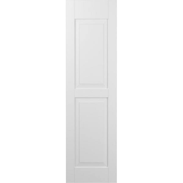 12 in. W x 64 in. H Americraft 2-Equal Raised Panel Exterior Real Wood Shutters Pair in White