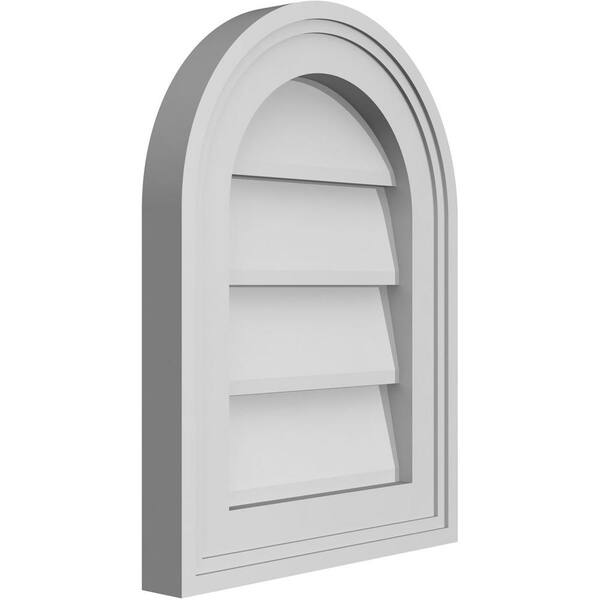 12 in. x 16 in. Round Top Surface Mount PVC Gable Vent: Decorative with Brickmould Frame