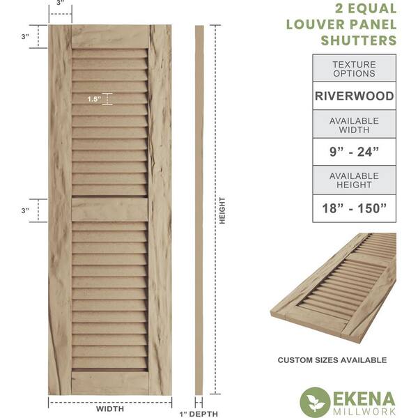 12 in. x 24 in. Timberthane Polyurethane 2-Equal Louver Riverwood Faux Wood Shutters Pair