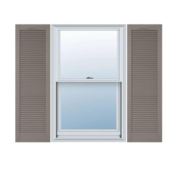 12 in. x 25 in. Lifetime Vinyl Custom Cathedral Top All Open Louvered Shutters Pair Clay