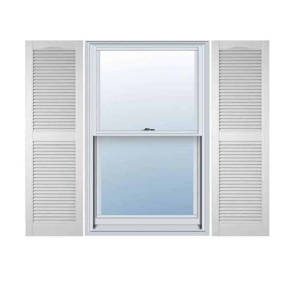 12 in. x 25 in. Lifetime Vinyl Custom Cathedral Top Center Mullion Open Louvered Shutters Pair White