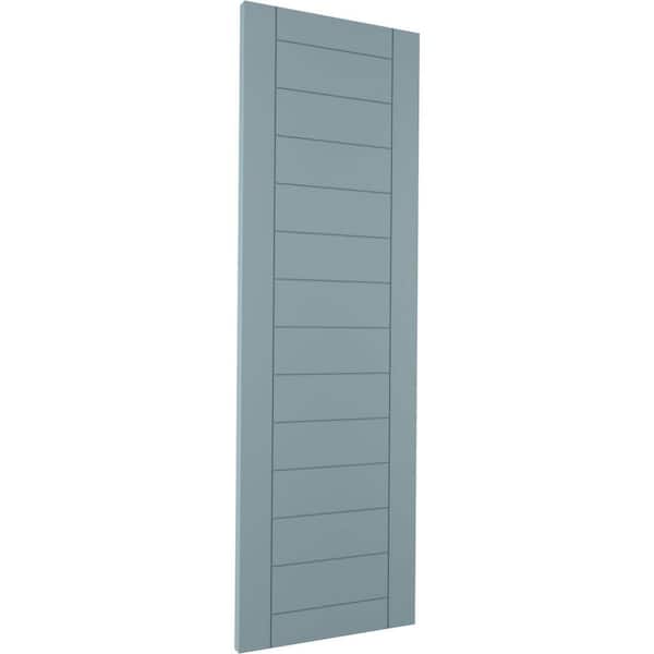 12 in. x 25 in. PVC Horizontal Slat Framed Modern Style Fixed Mount Board and Batten Shutters Pair in Peaceful Blue