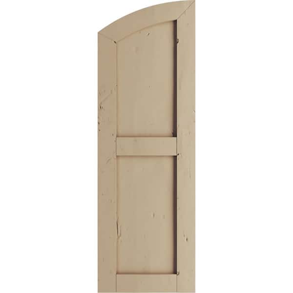 12 in. x 26 in. Polyurethane Knotty Pine 2 Equal Flat Panel Elliptical Top Faux Wood Shutters Primed Tan