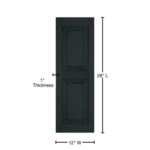 12 in. x 28 in. Exterior Real Wood Pine Raised Panel Shutters Pair Dark Green