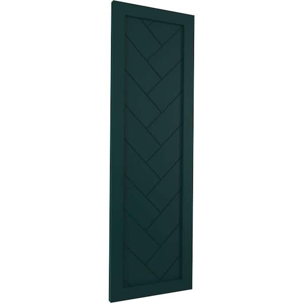12 in. x 28 in. PVC Single Panel Herringbone Modern Style Fixed Mount Board and Batten Shutters Pair in Thermal Green