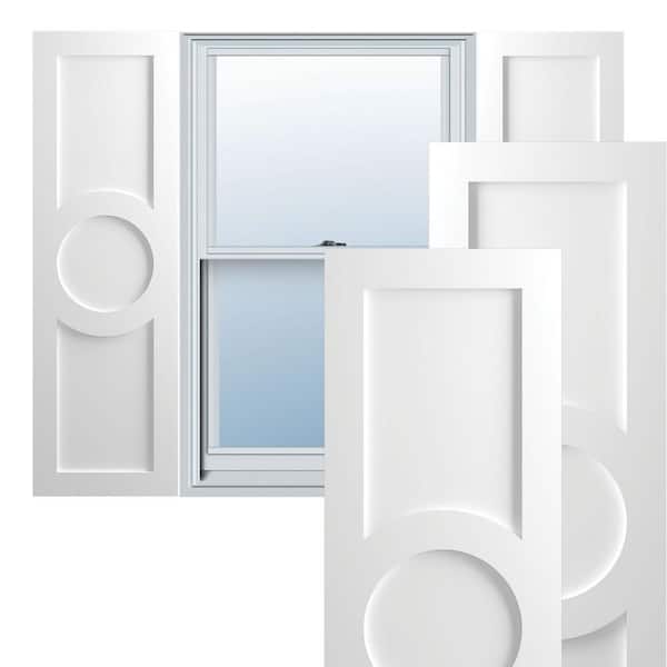 12 in. x 28 in. True Fit PVC Center Circle Arts & Crafts Fixed Mount Flat Panel Shutters Pair in Unfinished