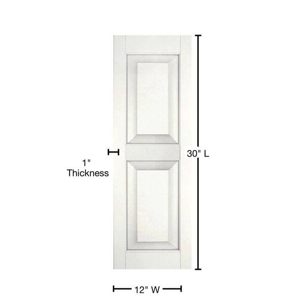12 in. x 30 in. Exterior Real Wood Sapele Mahogany Raised Panel Shutters Pair White