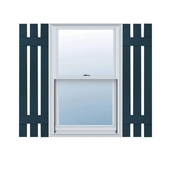 12 in. x 34 in. Lifetime Vinyl Custom Three Board Spaced Board and Batten Shutters Pair Midnight Blue