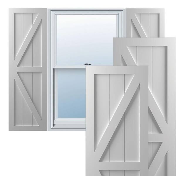 12 in. x 34 in. True Fit PVC 2-Equal Panel Farmhouse Fixed Mount Board and Batten Shutters Pair with Z-Bar in Primed