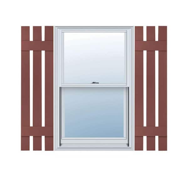 12 in. x 35 in. Lifetime Vinyl Custom Three Board Spaced Board and Batten Shutters Pair Burgundy Red
