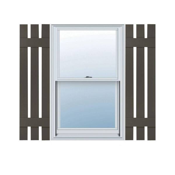 12 in. x 35 in. Lifetime Vinyl Custom Three Board Spaced Board and Batten Shutters Pair Musket Brown