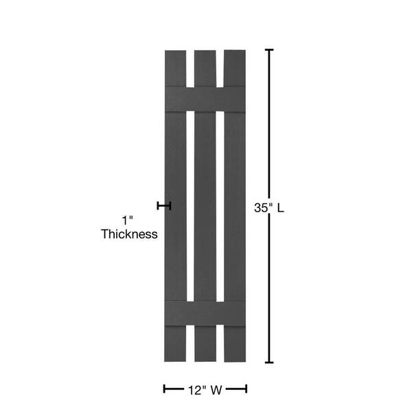 12 in. x 35 in. Lifetime Vinyl Standard Three Board Spaced Board and Batten Shutters Pair Tuxedo Grey