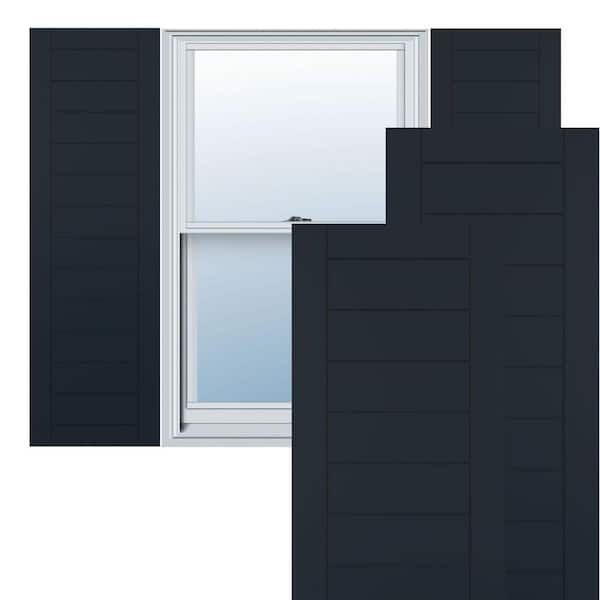 12 in. x 35 in. PVC Horizontal Slat Framed Modern Style Fixed Mount Board & Batten Shutters Pair in Starless Night Blue
