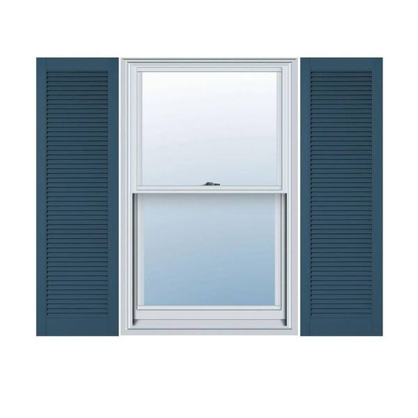 12 in. x 39 in. Lifetime Vinyl Custom Straight Top All Open Louvered Shutters Pair Classic Blue