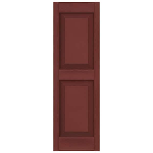 12 in. x 39 in. Lifetime Vinyl Custom Two Equal Raised Panel Shutters Pair Burgundy Red