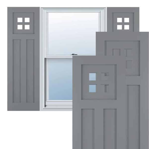 12 in. x 40 in. True Fit PVC San Antonio Mission Style Fixed Mount Flat Panel Shutters Pair in Ocean Swell