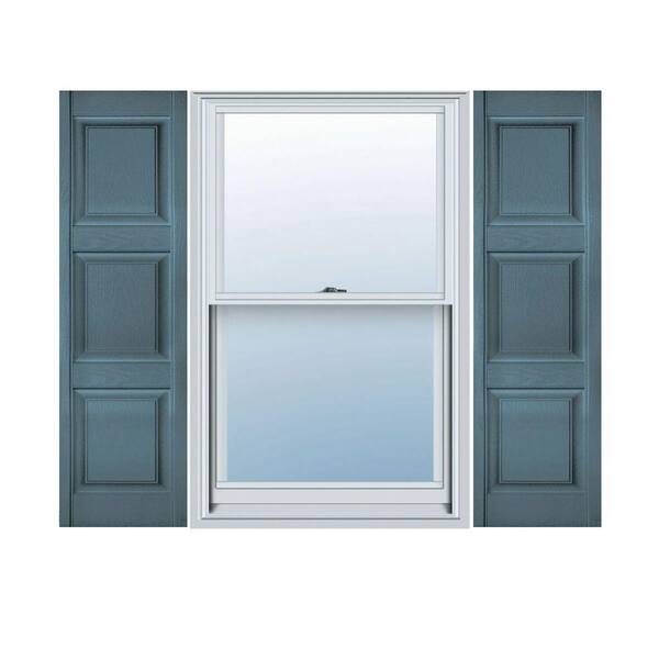 12 in. x 41 in. Lifetime Vinyl Custom 3 Equal Raised Panel Shutters Pair Wedgewood Blue