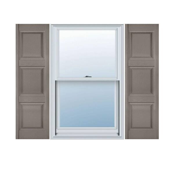 12 in. x 42 in. Lifetime Vinyl Custom 3 Equal Raised Panel Shutters Pair Clay