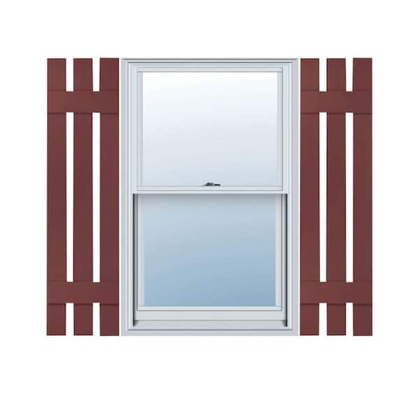 12 in. x 42 in. Lifetime Vinyl Custom Three Board Spaced Board and Batten Shutters Pair Wineberry