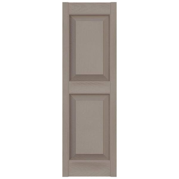 12 in. x 44 in. Lifetime Vinyl Custom 2 Equal Raised Panel Shutters Pair Clay