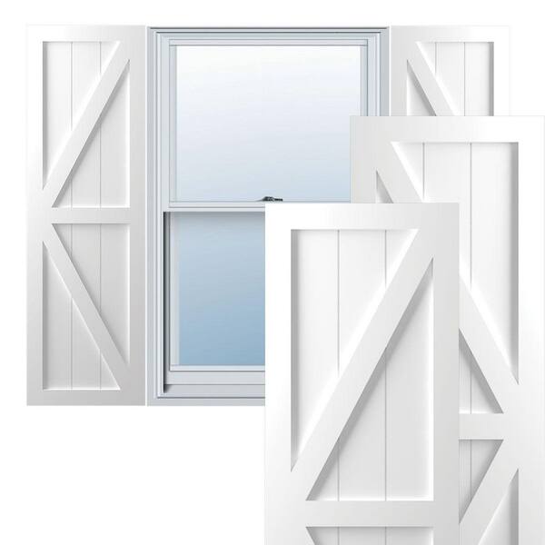 12 in. x 44 in. True Fit PVC Two Equal Panel Farmhouse Fixed Mount Board and Batten Shutters Pair in White