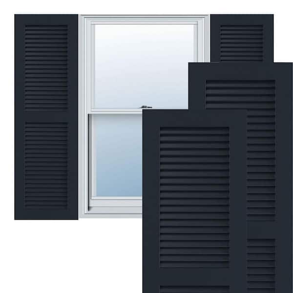 12 in. x 45 in. PVC True Fit Two Equal Louvered Shutters Pair in Starless Night Blue