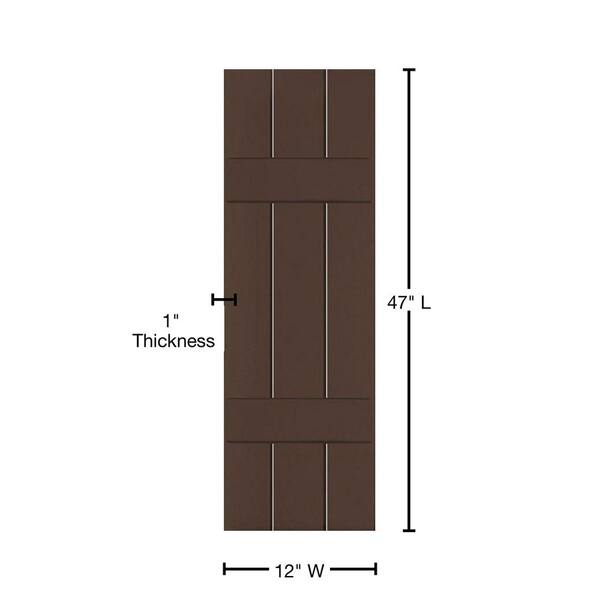 12 in. x 47 in. Exterior Real Wood Sapele Mahogany Board and Batten Shutters Pair Tudor Brown