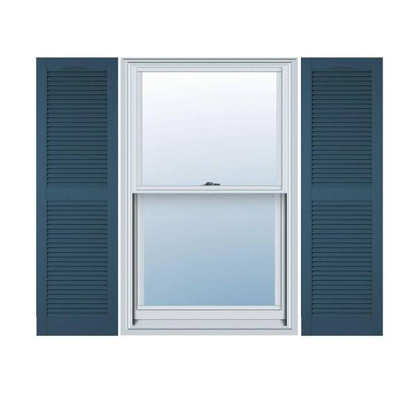 12 in. x 48 in. Lifetime Vinyl Custom Cathedral Top Center Mullion Open Louvered Shutters Pair Classic Blue