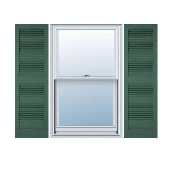 12 in. x 48 in. Lifetime Vinyl Custom Cathedral Top Center Mullion Open Louvered Shutters Pair Forest Green