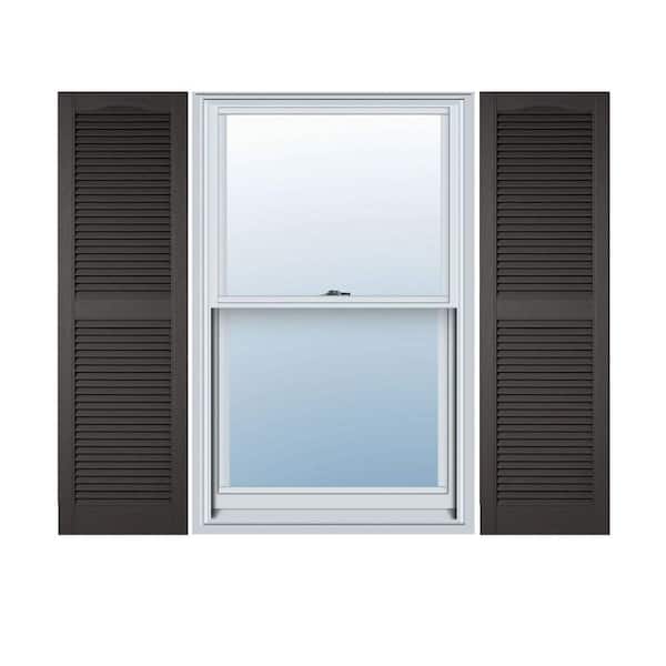 12 in. x 48 in. Lifetime Vinyl Custom Cathedral Top Center Mullion Open Louvered Shutters Pair Tuxedo Grey