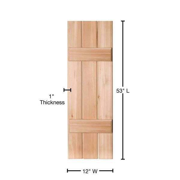 12 in. x 53 in. Exterior Real Wood Pine Board and Batten Shutters Pair Unfinished
