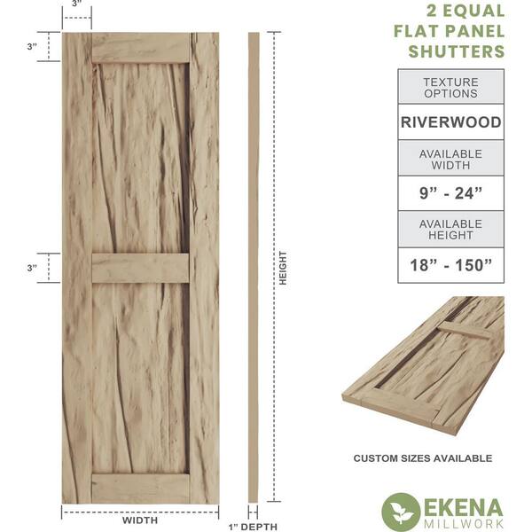12 in. x 54 in. Flat Panel Timberthane Polyurethane 2 Equal Panel Riverwood Faux Wood Shutters Pair