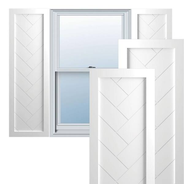 12 in. x 54 in. PVC True Fit Single Panel Herringbone Modern Style Fixed Mount Board and Batten Shutters Pair in White