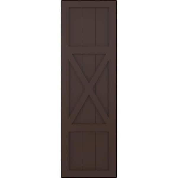 12 in. x 54 in. True Fit PVC Center X-Board Farmhouse Fixed Mount Board and Batten Shutters Pair in Raisin Brown
