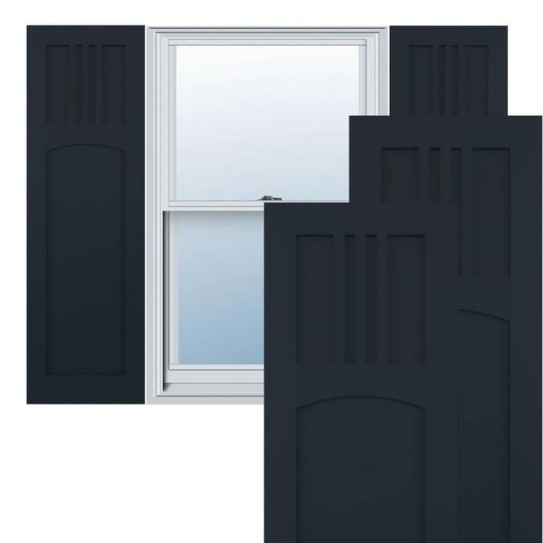 12 in. x 57 in. PVC True Fit San Miguel Mission Style Fixed Mount Flat Panel Shutters Pair in Starless Night Blue