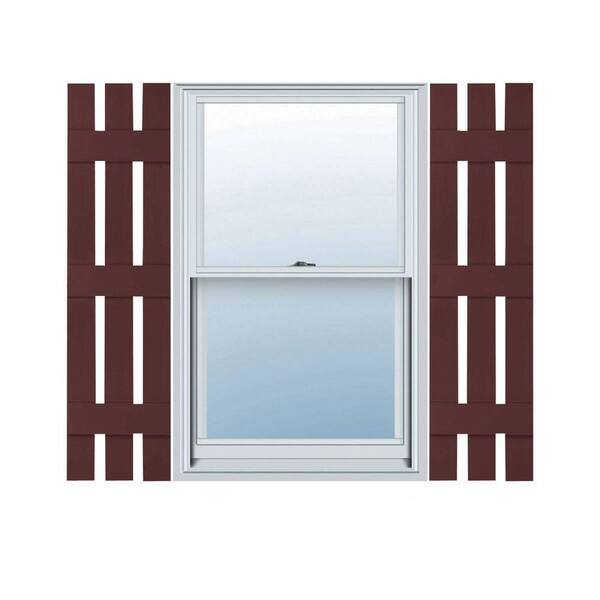 12 in. x 59 in. Lifetime Vinyl Custom Three Board Spaced Board and Batten Shutters Pair Bordeaux