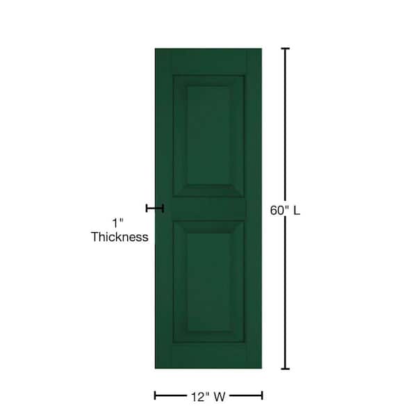 12 in. x 60 in. Exterior Real Wood Pine Raised Panel Shutters Pair Chrome Green
