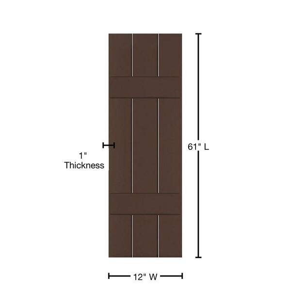 12 in. x 61 in. Exterior Real Wood Sapele Mahogany Board and Batten Shutters Pair Tudor Brown