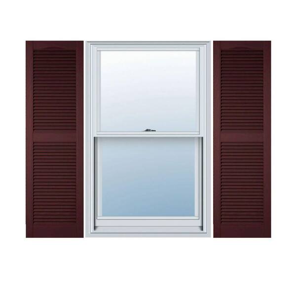 12 in. x 66 in. Lifetime Vinyl Custom Cathedral Top Center Mullion Open Louvered Shutters Pair Bordeaux