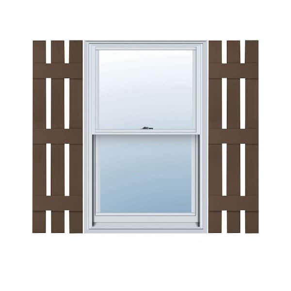 12 in. x 66 in. Lifetime Vinyl TailorMade Three Board Spaced Board and Batten Shutters Pair Federal Brown