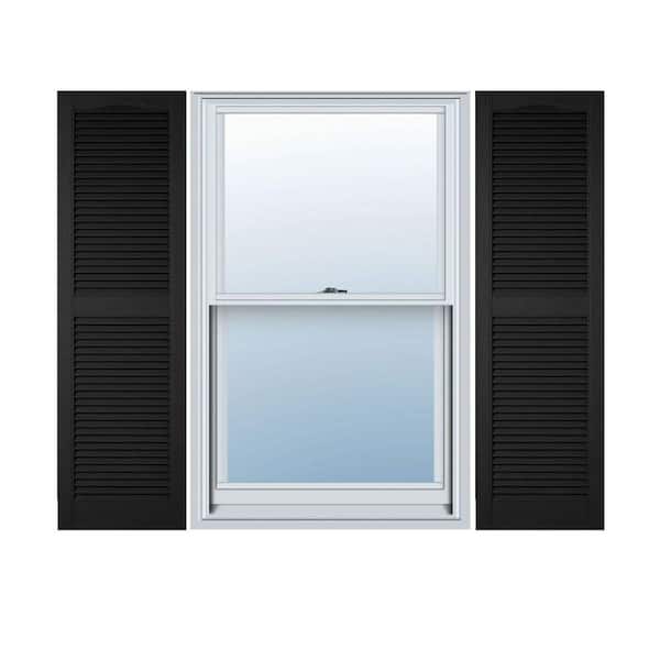 12 in. x 67 in. Lifetime Vinyl Custom Cathedral Top Center Mullion Open Louvered Shutters Pair Black