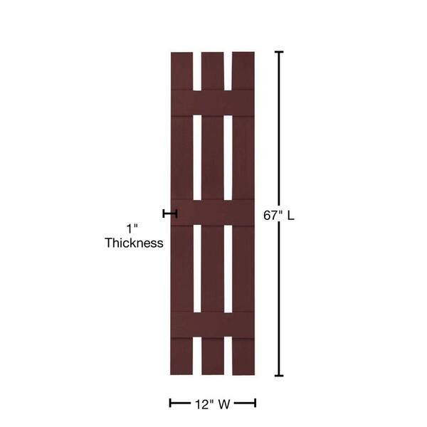 12 in. x 67 in. Lifetime Vinyl Standard Three Board Spaced Board and Batten Shutters Pair Bordeaux