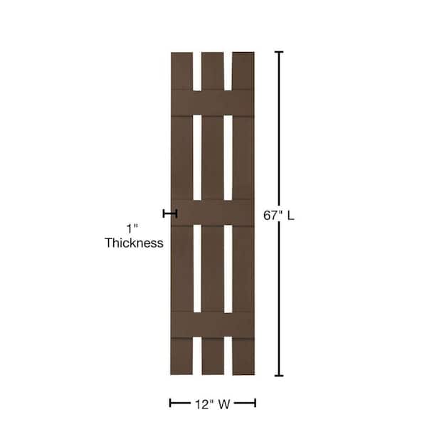12 in. x 67 in. Lifetime Vinyl Standard Three Board Spaced Board and Batten Shutters Pair Federal Brown