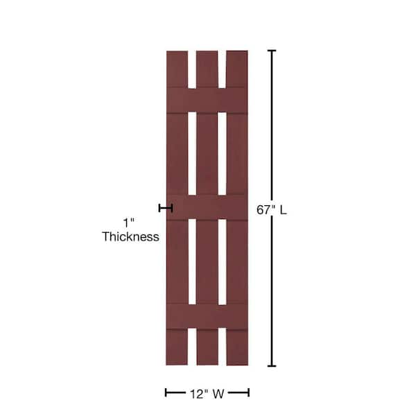 12 in. x 67 in. Lifetime Vinyl Standard Three Board Spaced Board and Batten Shutters Pair Wineberry
