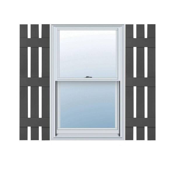12 in. x 69 in. Lifetime Vinyl TailorMade Three Board Spaced Board and Batten Shutters Pair Tuxedo Grey