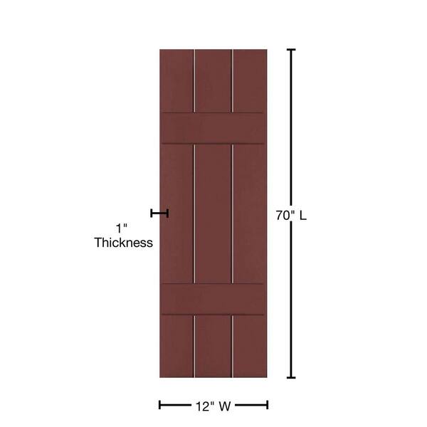 12 in. x 70 in. Exterior Real Wood Pine Board and Batten Shutters Pair Cottage Red