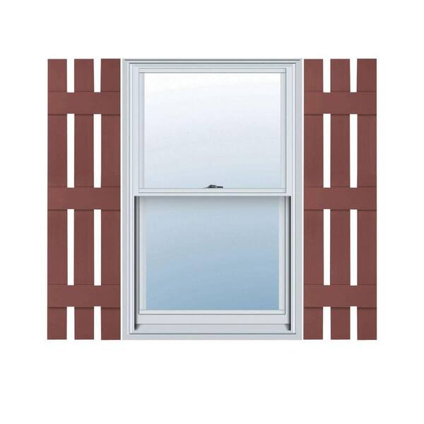 12 in. x 71 in. Lifetime Vinyl Custom Three Board Spaced Board and Batten Shutters Pair Burgundy Red
